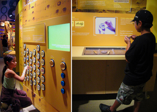 Visitors interact with the Rebus machine and create a Cuneiform clay tablet.