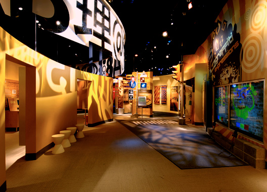 Communication exhibition uses an environmental narrative approach and hands-on activities to disseminate the content. This exhibition incorporates full-body immersive environments, electromechanical and multimedia interactives in four themed content zones: Body and Language; Symbols, Signs and Writing; Digital Media and Content; Signals and Networks.