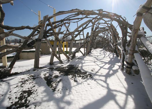 An experiment in rapid exhibition prototyping and developing, Wildlife Challenge was developed, designed and installed within 100 days, using unconventional exhibition design tactics. The graphic designer graffiti spray painted the graphic panels. A cast of volunteers weaved twigs and branches over several weekends to create a man-made thicket. Team members harvested the bamboo stalks from a local bamboo forest and foraged the twigs and branches from the Liberty State Park. A departure from the conventional graphic standards, the interpretation texts were written in Haiku.